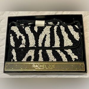 Rachel Zoe Zebra Pattern Beaded Clutch with snap closure. New