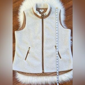 Crown & Ivy Cream Sherpa Tan/Brown Trim Fleece Vest-Size L