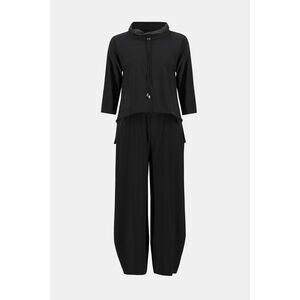 Effortless polish meets all-day comfort in this Joseph Ribkoff black jumpsuit. Designed with a flattering draped cowl neckline, 3/4 sleeves, and a relaxed silhouette, this one-piece features a regular-fit top paired with wide-leg bottoms for an elegant, elongating look. Made from a wrinkle-resistant stretch fabric, it’s travel-friendly and perfect for work, events, or everyday wear.