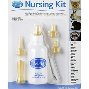Designed by feeding experts to properly deliver the right amount of nutrition at the correct rate to smaller nursing animals. Kit contains 2 oz. Bottle, 3 Latex free nipples, and Cleaning Brush.