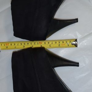 Woman's Simple Black high heel bootie. Man-made soft suede feel textile.