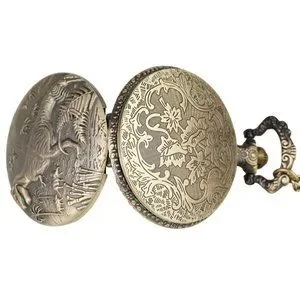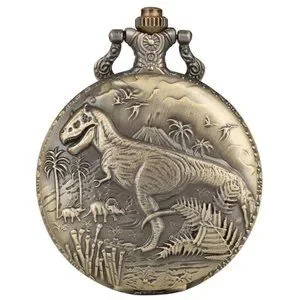 Brand new pocket watch with stunning dinosaur scene in 3D relief. Makes a great gift for Jurassic Park fans, young and old. Metal construction. Quartz movement, battery operated. Battery is included and pre-installed.