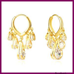 14K Gold Plated Huggie Hoop Earrings Dangle Statement Hypoallergenic