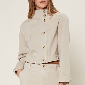 NWOT Anthro Current Air Talia ivory denim trucker jacket SIZE XS