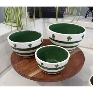 Rae Dunn Mugs St. Patrick's Day (2) and Terramoto Stacking Bowls (3) White/Green