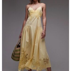 Topshop cutwork lace poplin midi sundress in lemon NWT 0 $129