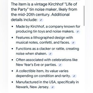Vintage Kirchhof "Life of the Party" tin noise maker, from the mid-20th century