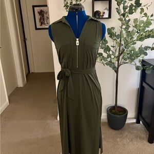 Michael Kors Olive Green Belted Zip Dress