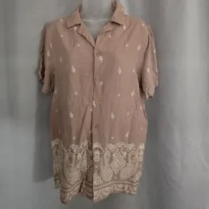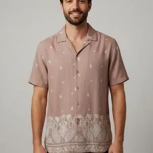 And Now This Men's Fawn Bandana-Print Regular-Fit Button-Up Camp Shirt SZ S