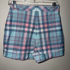 Blackmilk Plaid Women's Shorts in Blue and Pink
