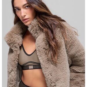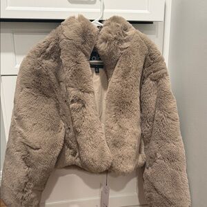 Elegant faux fur jacket in oat. Ideal for cozy outings.