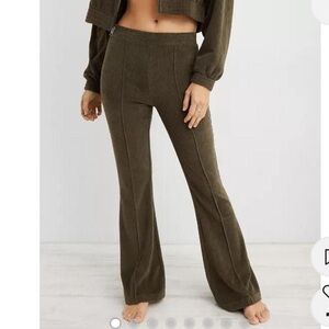 Aerie NWT Flare leg Velvet Green Ribbed Pants XLTall 32” Inseam