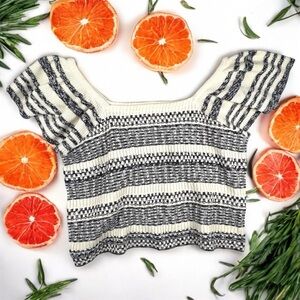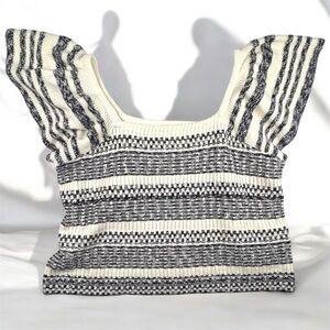 Treasure & Bond Striped Knit Women's 3X Crop Top Cable Knit Flutter Off Sleeves