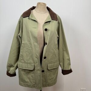 VTG LL Bean Women Medium Utility Field Barn Jacket Green Canvas Corduroy Collar Chore Coat Lined Gorpcore High Country Spring Fall English Streetlook Preppy