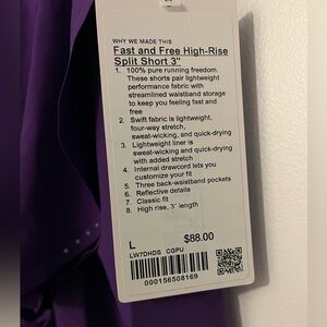 π Lululemon Fast and Free High-Rise Split Shorts 3β π