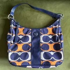 Coach Shoulder Bag Navy, White, Orange Signature C Pattern with wallet