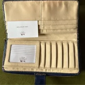 Stylish women's Coach shoulder bag and wallet set featuring a vibrant navy and orange signature design. Perfect for adding a pop of color to any outfit. Offers welcome! :)