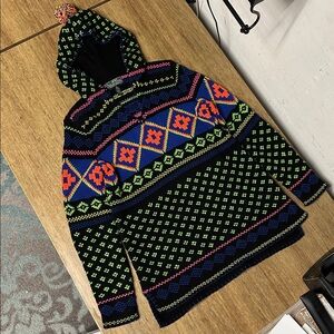 Lauren Ralph Lauren great shape Fairisle Navajo crochet knit sweater hoodie