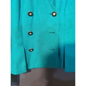 Keywords: Kasper, ASL, Blazer, Jacket, Teal, Green, Black Trim, Double Breasted, Career, Professional, Business, Vintage, Retro, Classic
