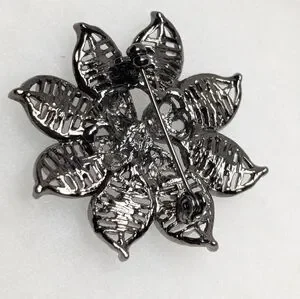 Vintage Gunmetal Floral Brooch Green Crystal Flower Statement Pin Whimsigoth