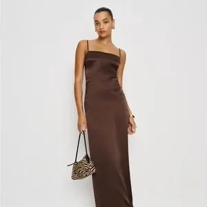 Reformation Frankie Dress. Sleek and stylish maxi dress. Luxurious satin fabric. Perfect for evening wear. only worn one! has a slit in the back.