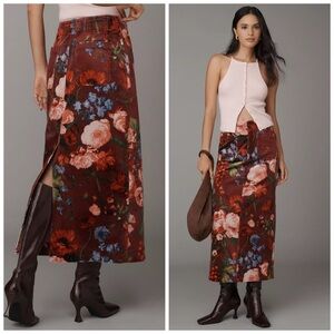 Anthropologie Maeve The Colette Corduroy Maxi Skirt Floral XL