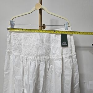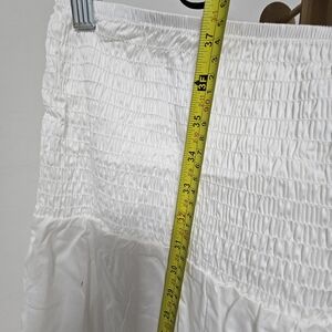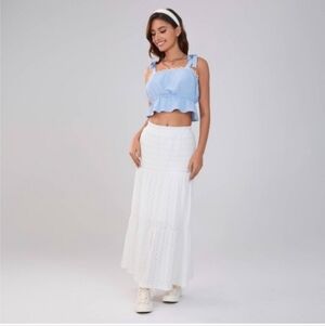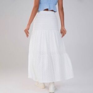 Chic white maxi skirt. A-line silhouette. Perfect for versatile styling.