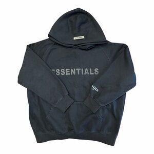 Stay stylish and comfortable with the Fear of God Essentials black hoodie. Perfect for any casual occasion. Preworn, in excellent condition. Minor wear. Lighting makes hoodie look lighter than actual dark shade of black. No rips, tears or holes.