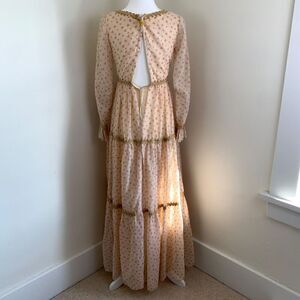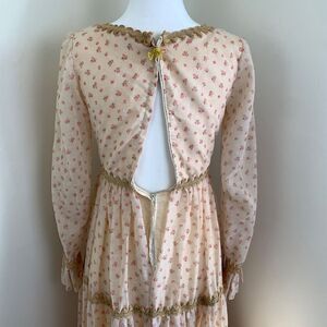 Vtg Floral Maxi Dress Ivory XS Long Sleeve Tiered Prairie Peasant Cottage 70s