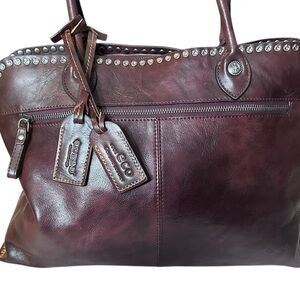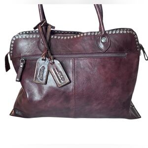 Old Trend Soul Stud Leather Satchel Bag burgundy rusty red