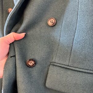 Chic teal coat with double-breasted design. Stylish lapels and button details. Ideal for a polished look.