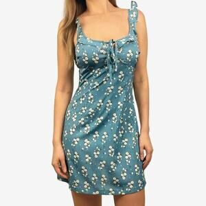 Nasty Gal Floral Mini Dress Size 4 Blue Sleeveless Ruffle Girlcore Summer