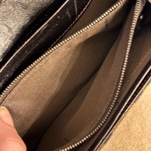 This is a BEAUTIFUL wallet! Absolutely no rips or stains on the canvas! The leather has normal marks/ dings on the interior from use but could be conditioned. No stains! No smells!
