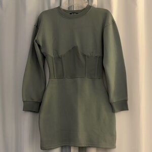 Missguided Olive Long Sleeve Corset Sweatshirt Dress, size 2