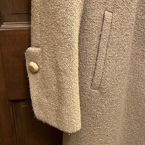 Keywords: True Vintage, 1950s style, 1960s style, Jackie O, Mrs. Maisel, Winter Coat, Luxury Wool, Genuine Mink, Union Made, Made in USA, Textured Wool, Minimalist, Neutral Aesthetic.