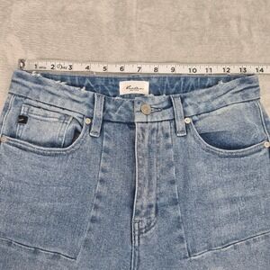 KanCan Petite 3 (28) Hawthorne Jeans Light Wash Flare Raw Hem Patch Pocket Short