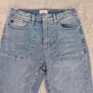 Keywords: KanCan, petite, flare, distressed, raw hem, light wash, denim, fashion, casual, trendy, streetwear, boho, festival, y2k, inset seamed patch pockets, western, country, stretch