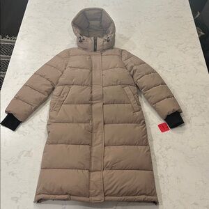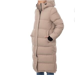 London Fog Women's Removable Hood Ulta Long Puffer Coat - Latte