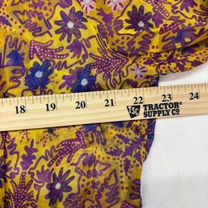 Float through your day in this enchanting Anthropologie maxi dress, a vision of vibrant energy and effortless grace. The golden yellow canvas bursts with a whimsical floral pattern in shades of rich purple and pink, creating a captivating visual tapestry that feels both bohemian and utterly chic. A charming tassel tie at the neckline adds a playful touch, while the tiered skirt and billowy long sleeves create a flattering, ethereal silhouette.