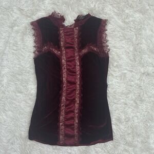 BKE Boutique Velvet Tank Top In Windsor Wine Whimsygoth Witchy Grunge Cottage