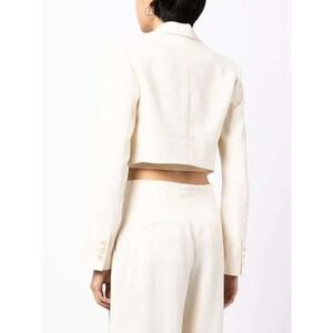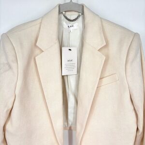 Keywords: ALC, cropped blazer, linen blend, cream jacket, tailored, women's blazer, classic lapel, designer jacket, lightweight, sophisticated, modern silhouette, business casual, evening wear, luxury