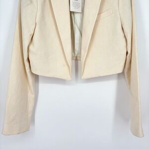 NWT ALC Andrews Cropped Open Blazer Sz 12 Cream Linen Tailored Chic *Flaw