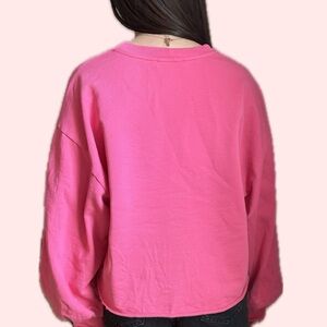 Bold pink sweatshirt with a relaxed fit. Features long sleeves and a crew neckline