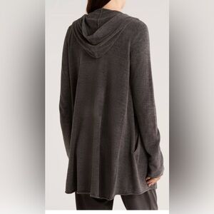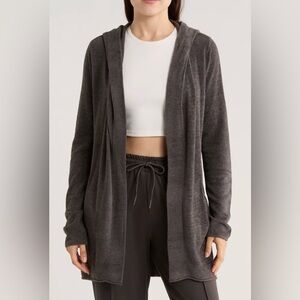 A roomy hood updates a lounge cardigan made from a sumptuous, lightweight knit that keeps you cozy around the house or out on errands.