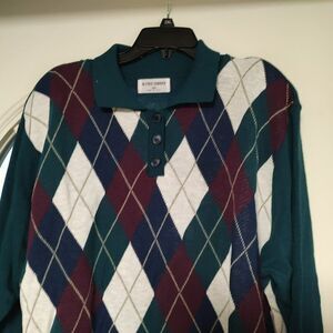 New with tag alfred dunner sweater size women's 2X. It is a dark teal multi-color argyle 24 inches armpit to armpit 26 inches long.