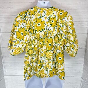 NWT Umgee Small Women yellow floral peasant babydoll blouse cottage coquette