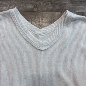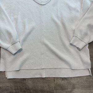 Aerie Wonder Textured V Neck Sweatshirt White Oversized Off Shoulder Womens XL