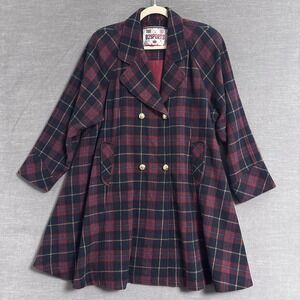 Vintage B2SPORTS Pea Coat XL Navy Red Plaid Double Breasted Swing Preppy 80s 90s