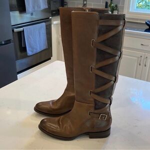 Frye Jordan Strappy Tall chocolate Brown Leather Riding Knee High Boots Size 9.5