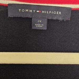 Tommy Hilfiger Navy Blue Red Trim V-Neck Argyle Sweater